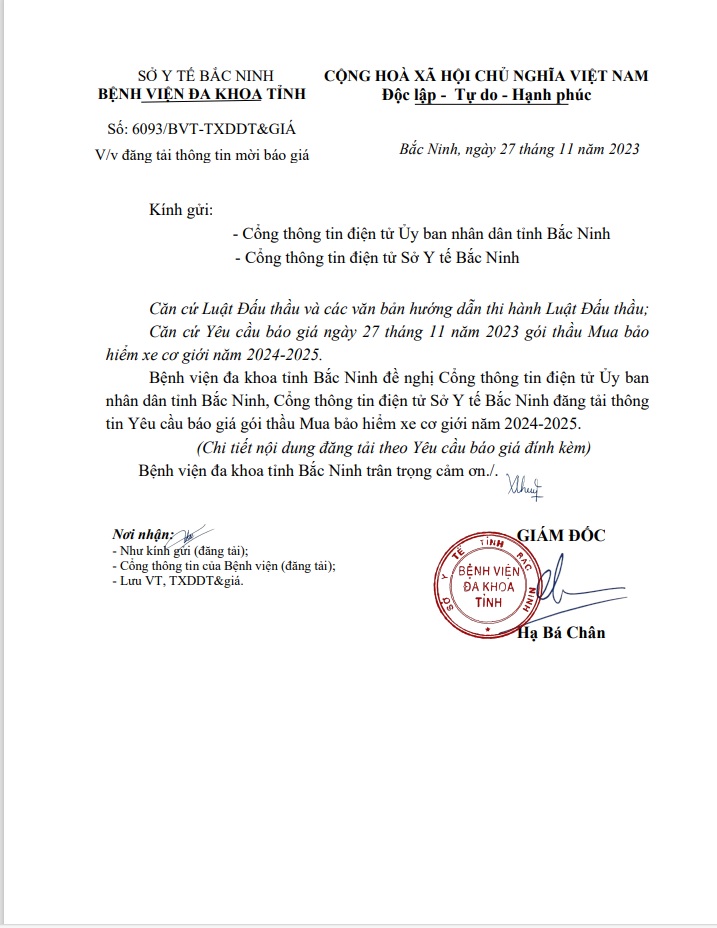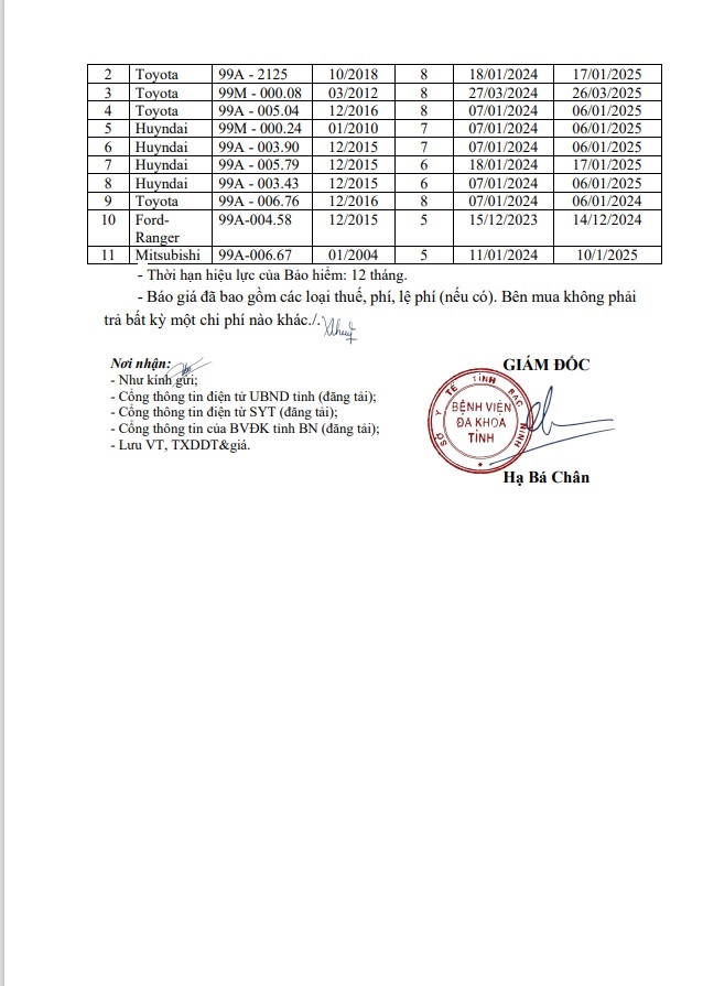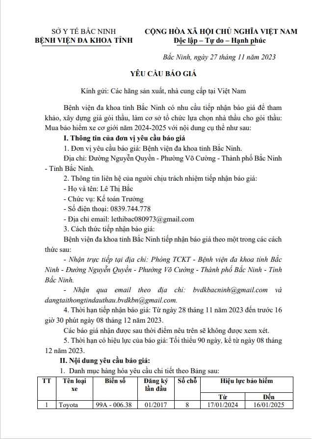 Yêu cầu báo giá gói thầu Mua bảo hiểm xe cơ giới năm 2024-2025