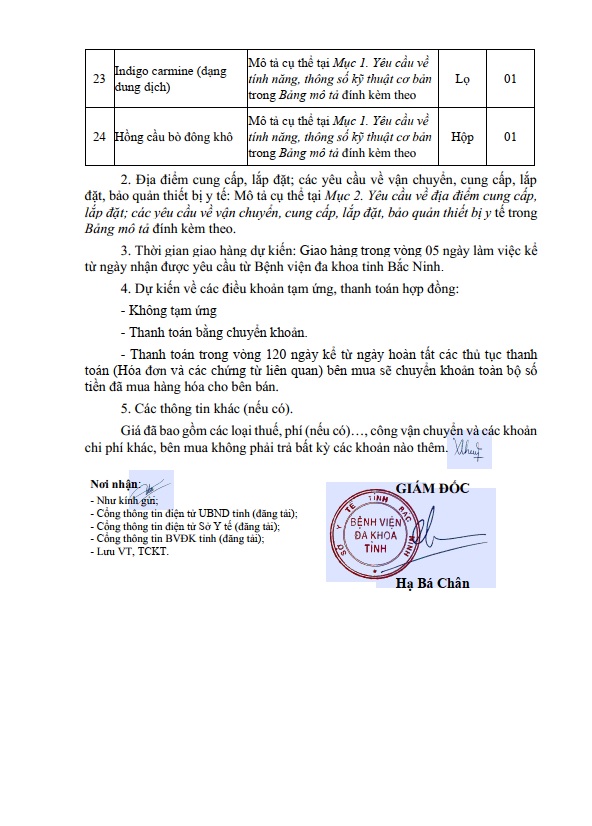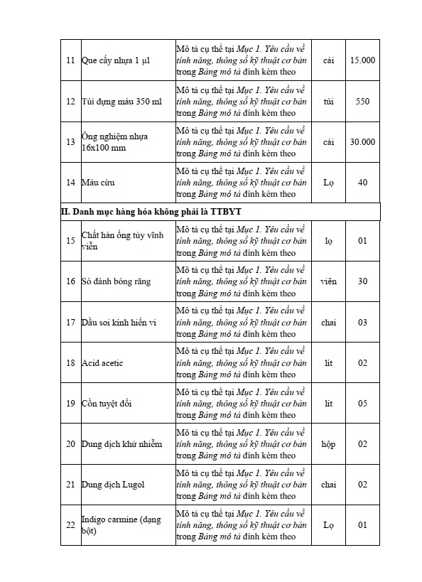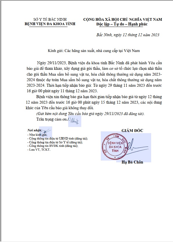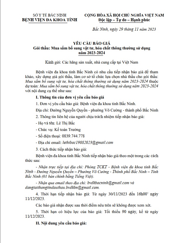 - Thư mời báo giá: Gói thầu Mua sắm vật tư, hoá chất cho máy tiệt trùng nhiệt độ thấp năm 2023 28/04/2023