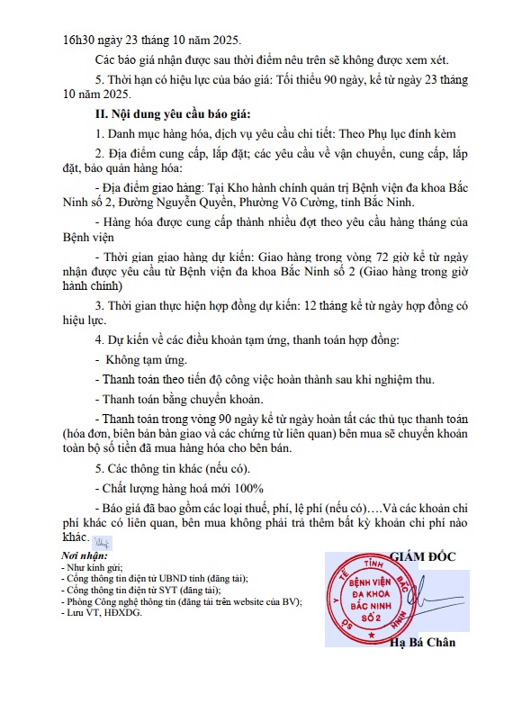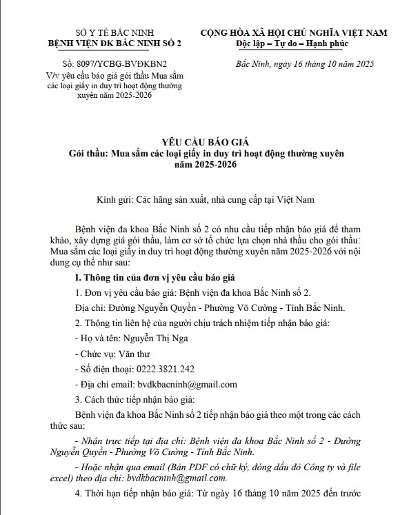 Yêu cầu báo giá gói thầu Mua sắm các loại giấy in duy trì hoạt động thường xuyên năm 2025-2026
