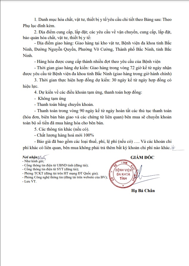 V/v gia hạn yêu cầu báo giá gói thầu Mua sắm vật tư, hóa chất xét nghiệm Real time PCR năm 2024-2025