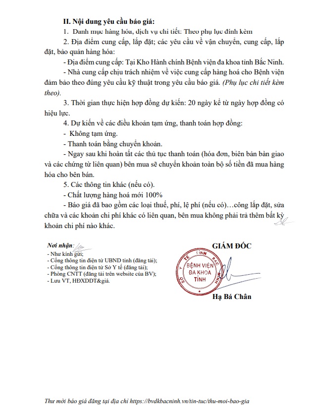 Yêu cầu báo giá gói thầu mua sắm cáng tay cứu thương cho xe cấp cứu BKS 99M-000.08, 99A-006.38, 99A-2125