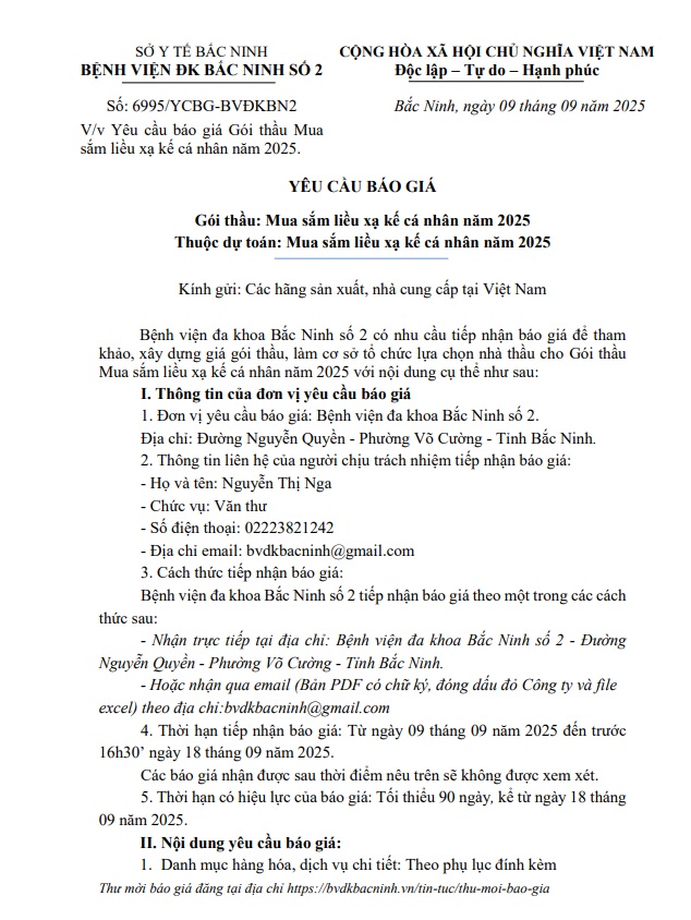 Yêu cầu báo giá Gói thầu Mua sắm liều xạ kế cá nhân năm 2025.