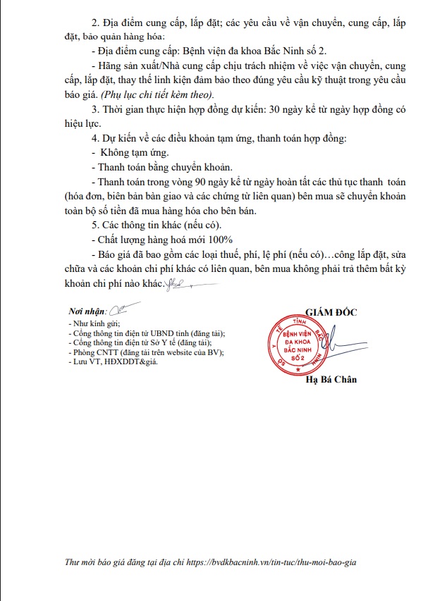 THƯ MỜI BÁO GIÁ Mua máy in nhiệt của cây lấy số bệnh nhân ngoại trú