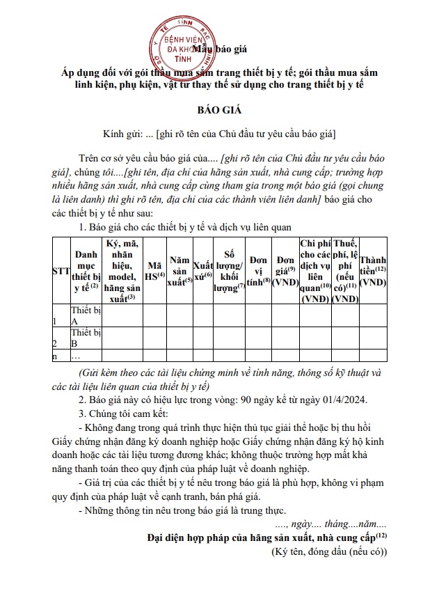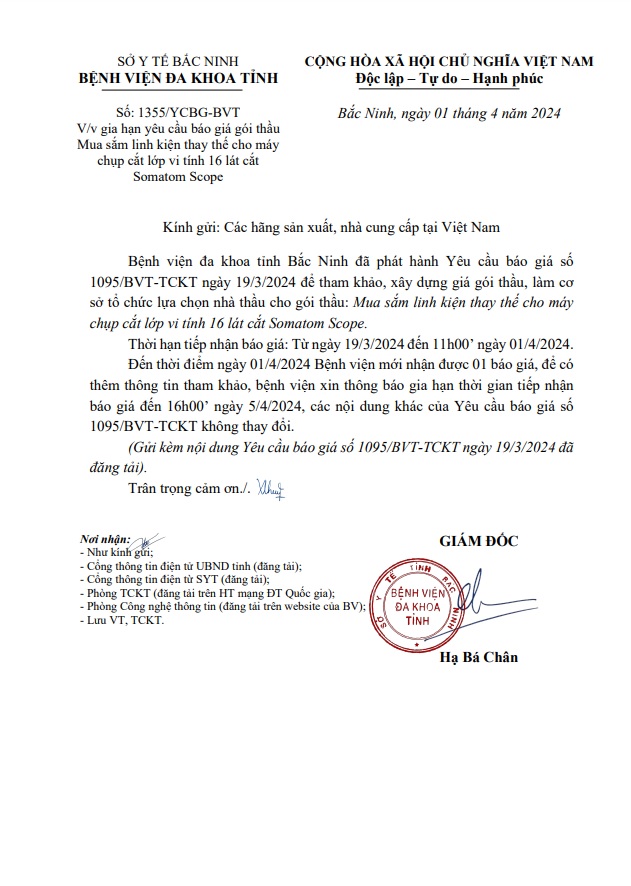 Gia hạn yêu cầu báo giá gói thầu Mua sắm thiết bị y tế xét nghiệm ma tuý năm 2024-2025