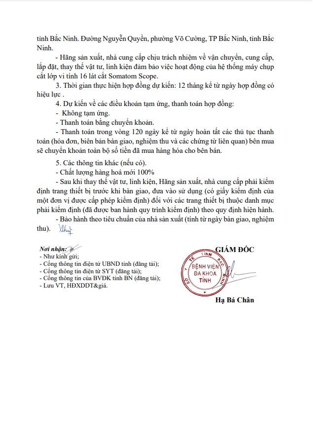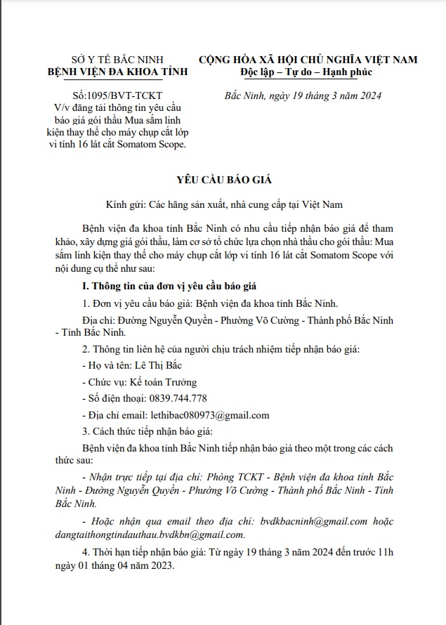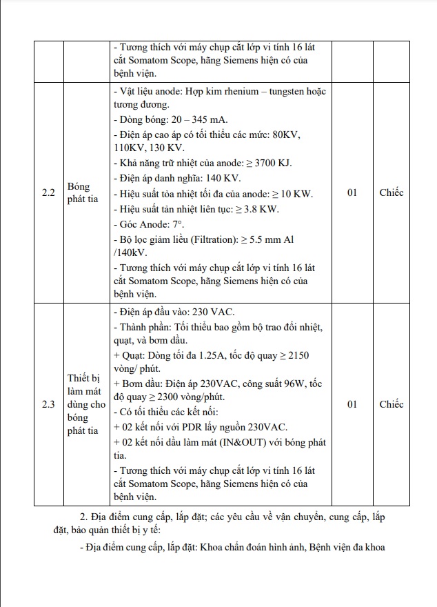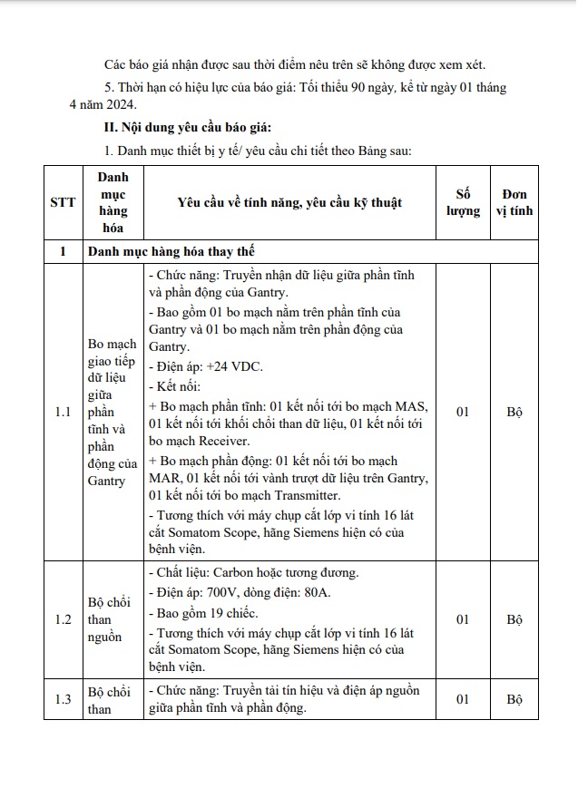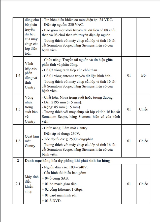Yêu cầu báo giá gói thầu Mua sắm linh kiện thay thế cho máy chụp cắt lớp vi tính 16 lát cắt Somatom Scope