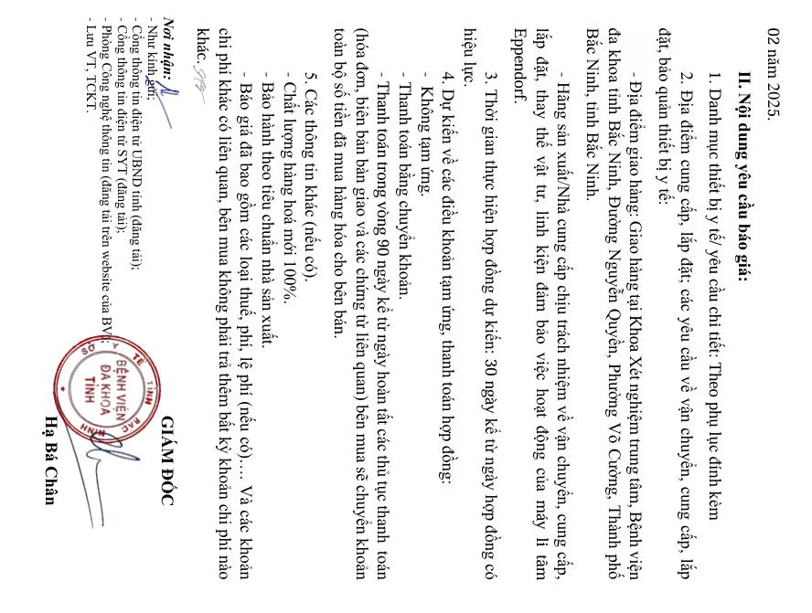Yêu cầu báo giá gói thầu: Mua sắm bổ sung 02 hoá chất, thiết bị y tế năm 2025