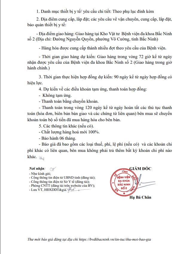 THƯ MỜI BÁO GIÁ Gói thầu Mua sắm hoá chất cho khoa Thận tiết niệu - Lọc máu phục vụ chuyên môn năm 2022-2023