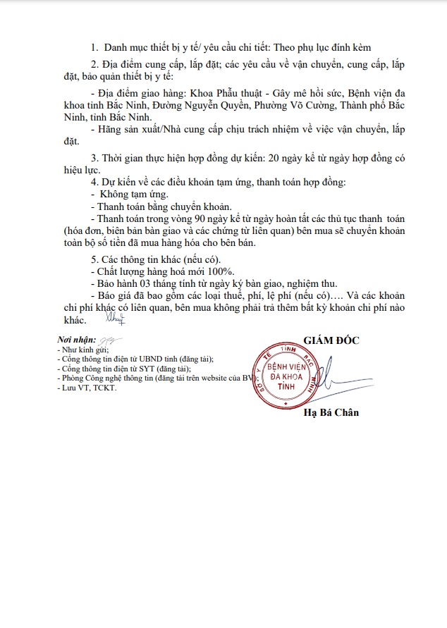 Yêu cầu báo giá gói thầu Thuê dịch vụ chứng thực chữ ký số phục vụ ký số tại Bệnh viện đa khoa Bắc Ninh số 2