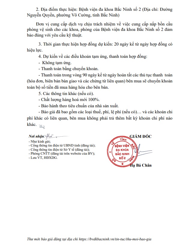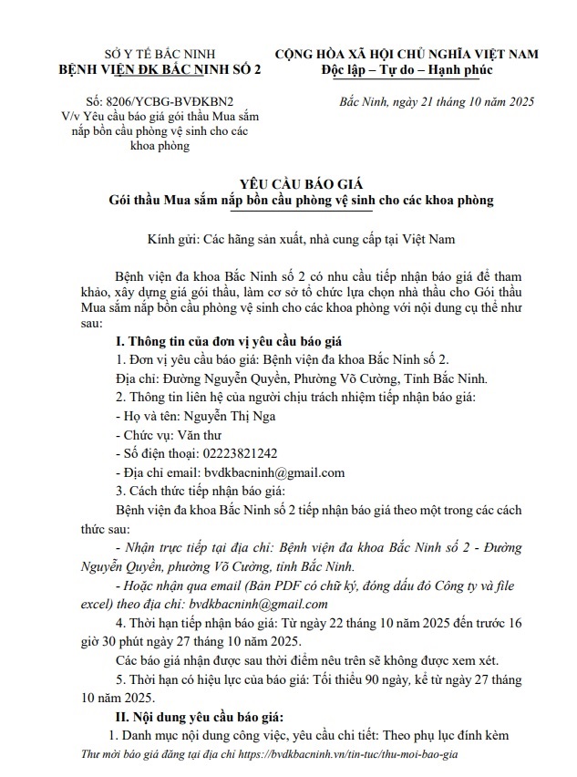 Yêu cầu báo giá gói thầu Mua sắm nắp bồn cầu phòng vệ sinh cho các khoa phòng