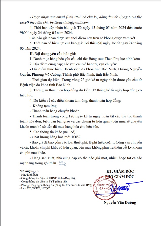Thư mời báo giá Gói thầu: Mua sắm Vật tư, y cụ phục vụ công tác chuyên môn và sửa chữa nhỏ