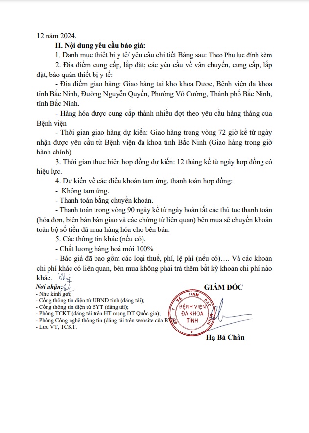 Gia hạn yêu cầu báo giá gói thầu :Mua sắm hoá chất, vật tư xét nghiệm, thiết bị y tế năm 2025 (Lần 1)
