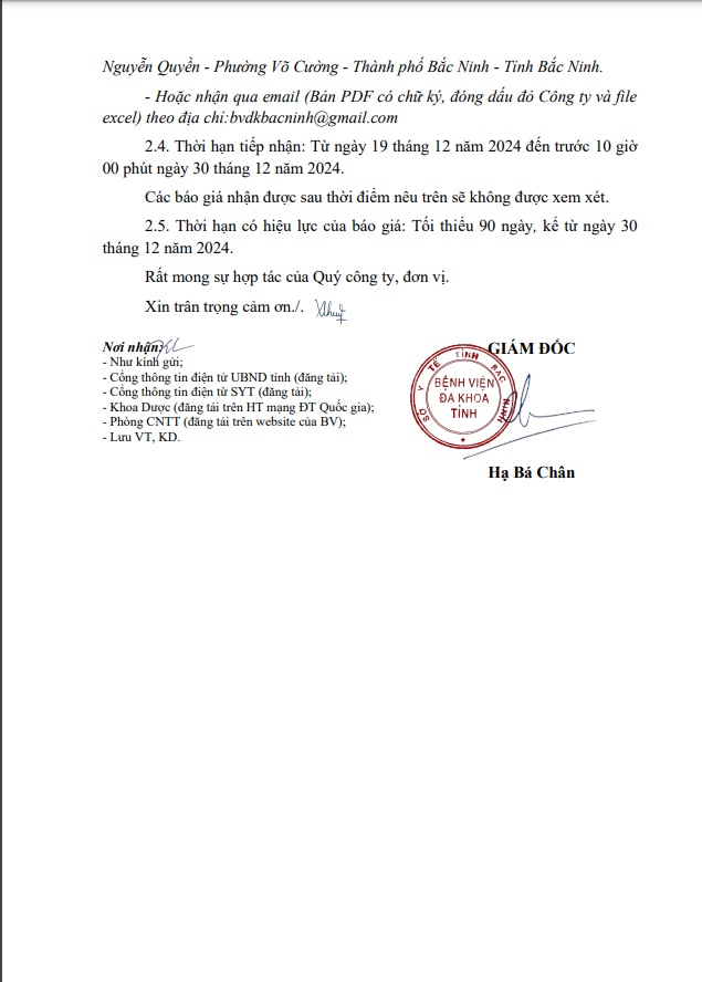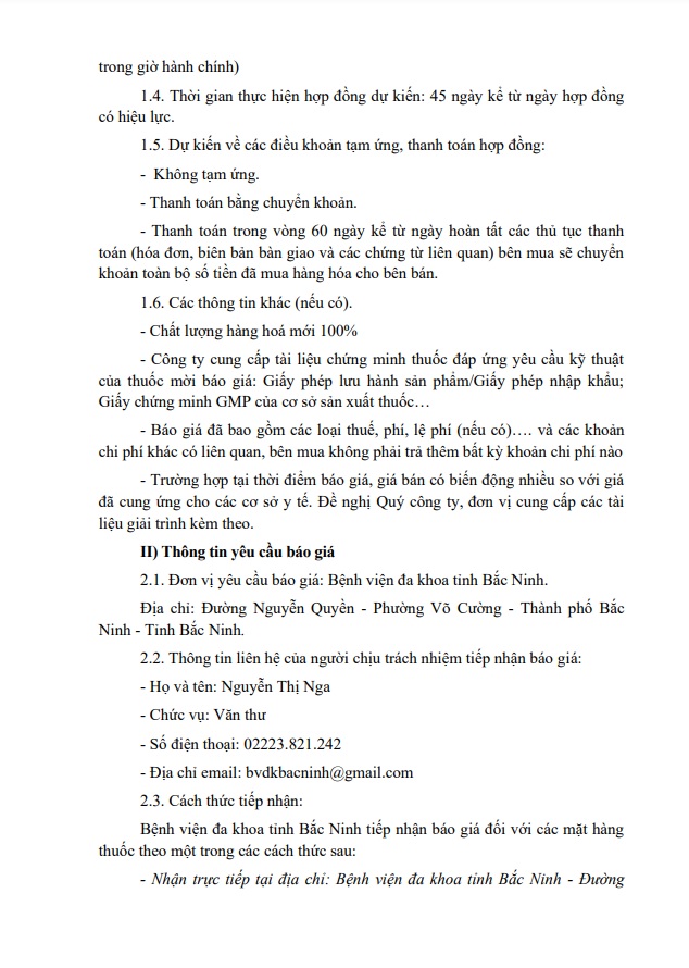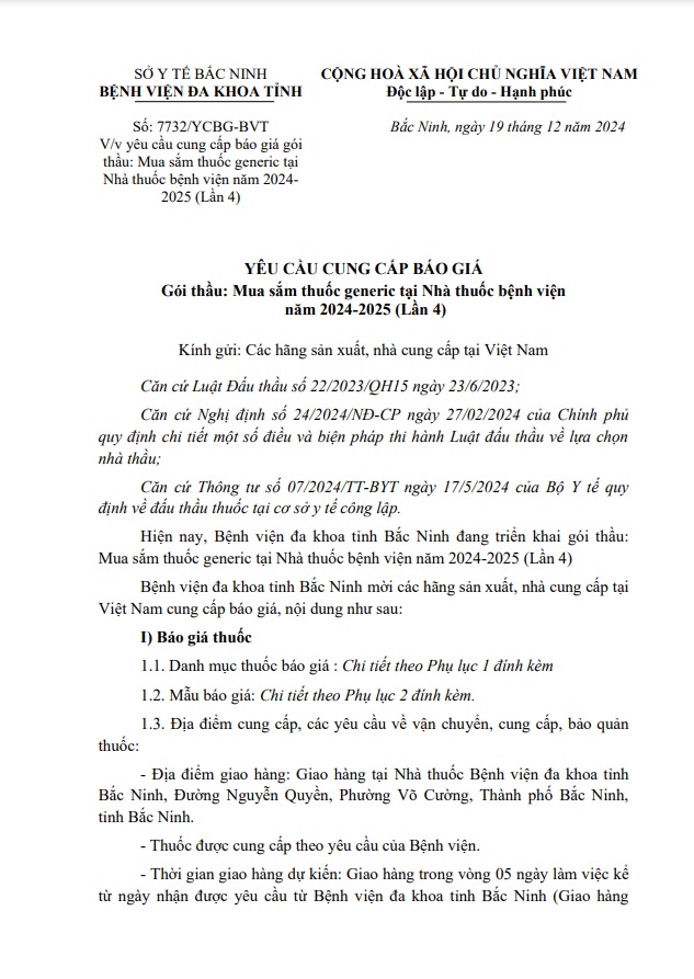 Yêu cầu báo giá Gói thầu: Mua sắm thuốc generic tại Nhà thuốc bệnh viện năm 2024-2025 (Lần 4)