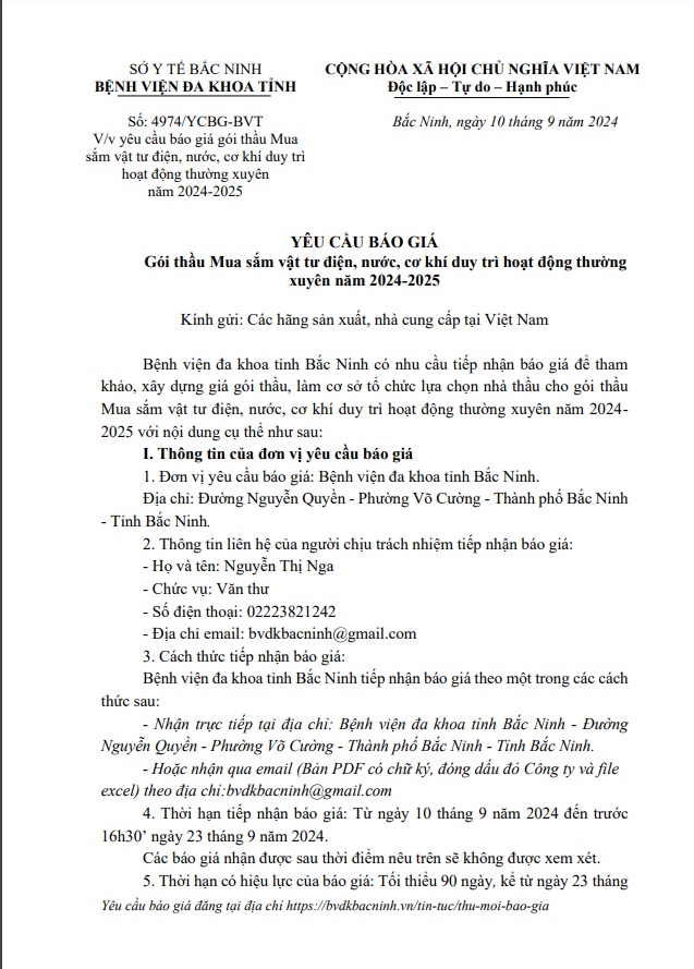- Yêu cầu báo giá gói thầu Mua sắm dụng cụ phẫu thuật Thuộc dự án 5: Đầu tư trang thiết bị y tế 09/05/2025