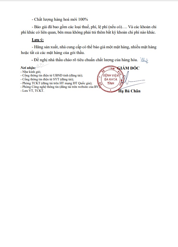 Thư mời báo giá: Mua sắm quạt công nghiệp và tủ mát cho khoa Thận Tiết Niệu - Lọc Máu