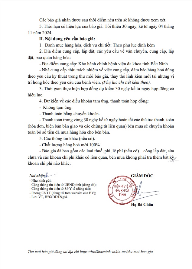 THƯ MỜI BÁO GIÁ Gói thầu: Mua sắm Bóng đèn cho máy xét nghiệm đông máu ACL Top 500 CTS