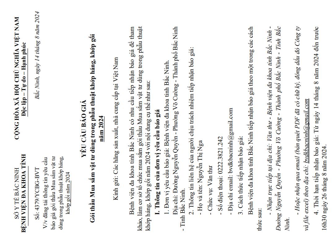 THƯ MỜI BÁO GIÁ Gói thầu mua sắm và thay thế linh kiện máy chạy thận nhân tạo Dialog