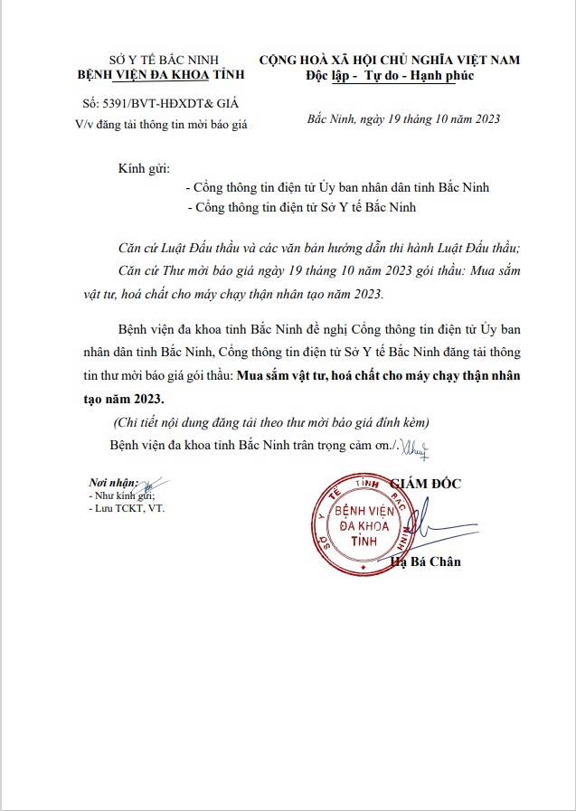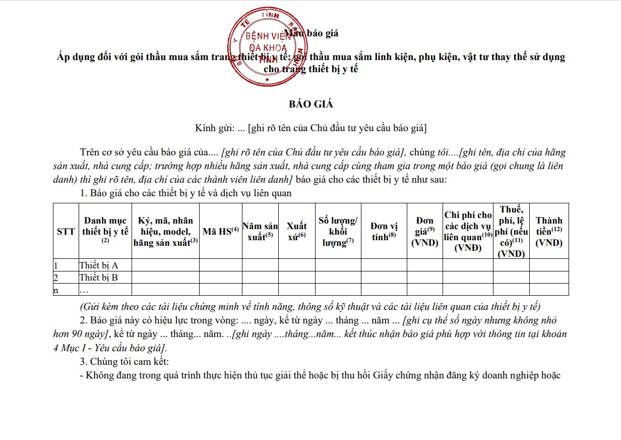 THƯ MỜI BÁO GIÁ: GÓI THẦU MUA SẮM VÒNG ĐEO TAY QUẢN LÝ BỆNH NHÂN DUY TRÌ HOẠT ĐỘNG THƯỜNG XUYÊN NĂM 2022