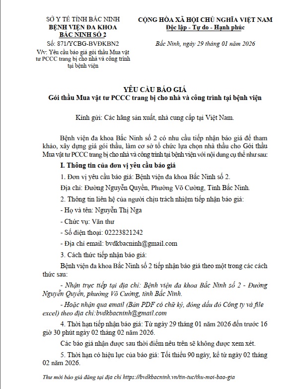 Yêu cầu báo giá gói thầu Mua vật tư PCCC trang bị cho nhà và công trình tại bệnh viện