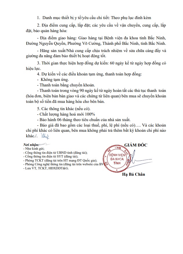 Yêu cầu báo giá gói thầu: Sửa chữa cáng đẩy và giường đa năng
