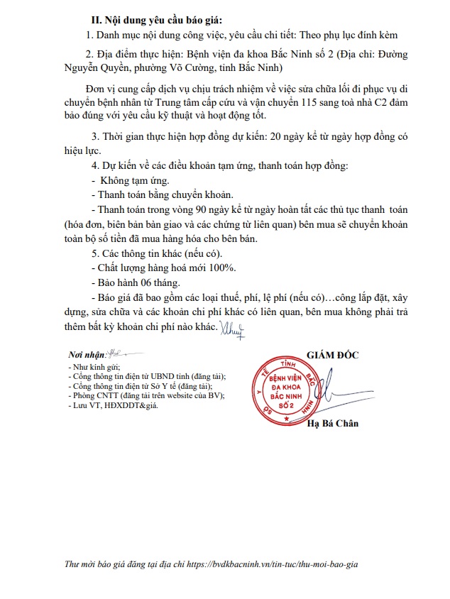 Yêu cầu báo giá gói thầu Sửa chữa lối đi phục vụ di chuyển bệnh nhân từ Trung tâm cấp cứu và vận chuyển 115 sang toà nhà C2