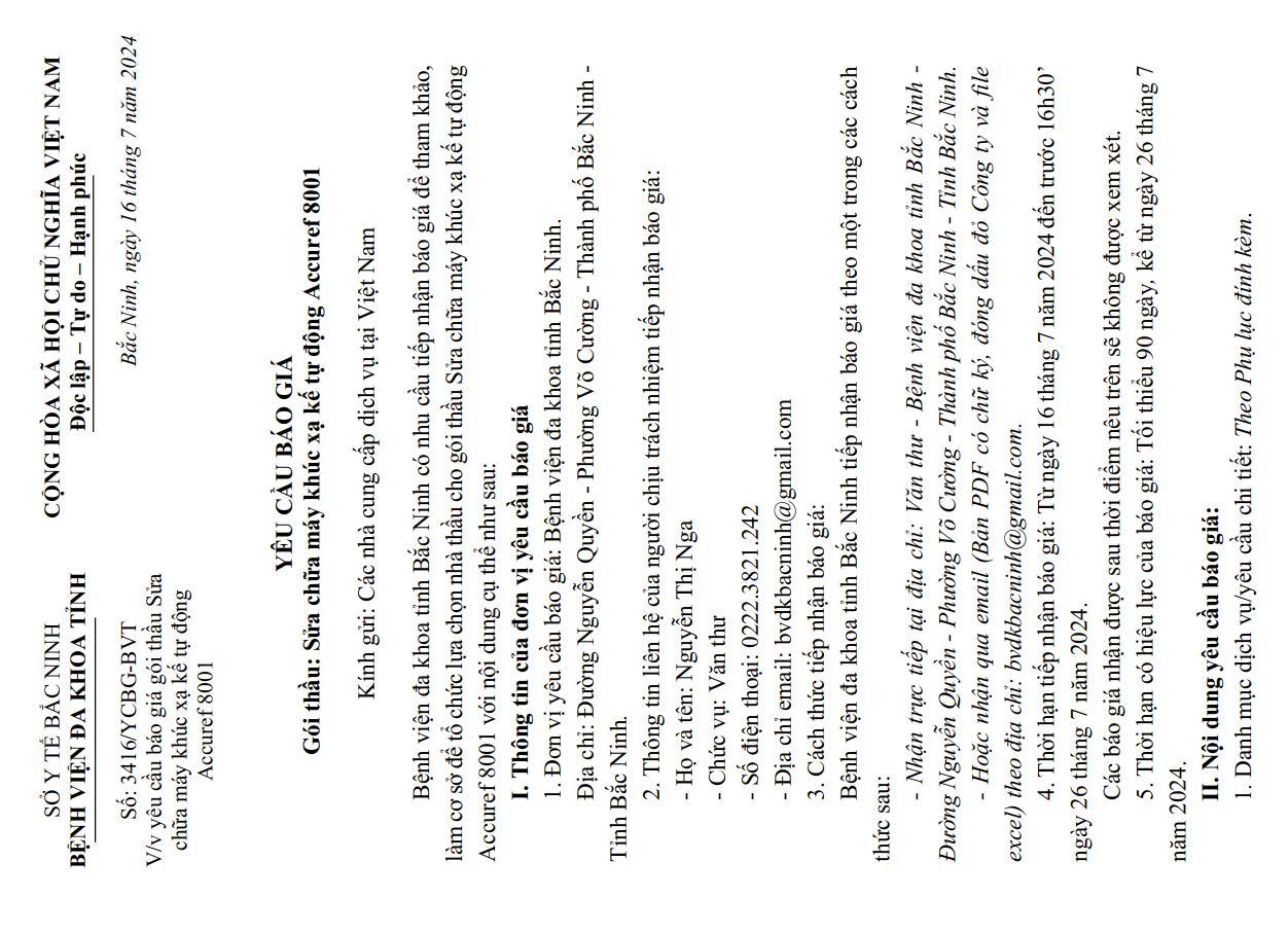 Yêu cầu báo giá Gói thầu: Sửa chữa máy khúc xạ kế tự động Accuref 8001