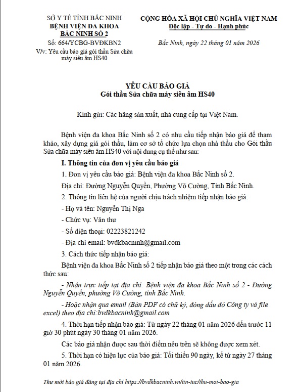 Yêu cầu báo giá gói thầu Sửa chữa máy siêu âm HS40