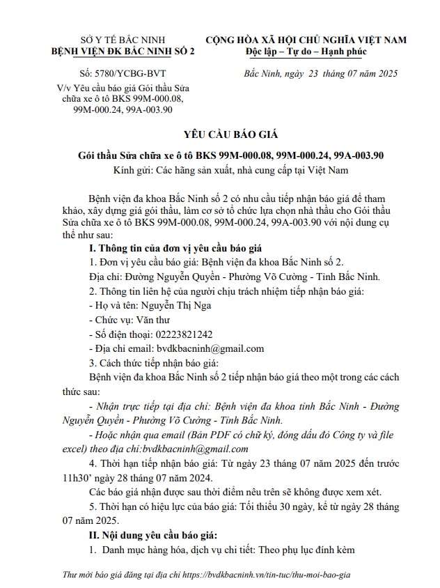 Yêu cầu báo giá Gói thầu Sửa chữa xe ô tô BKS 99M-000.08, 99M-000.24, 99A-003.90