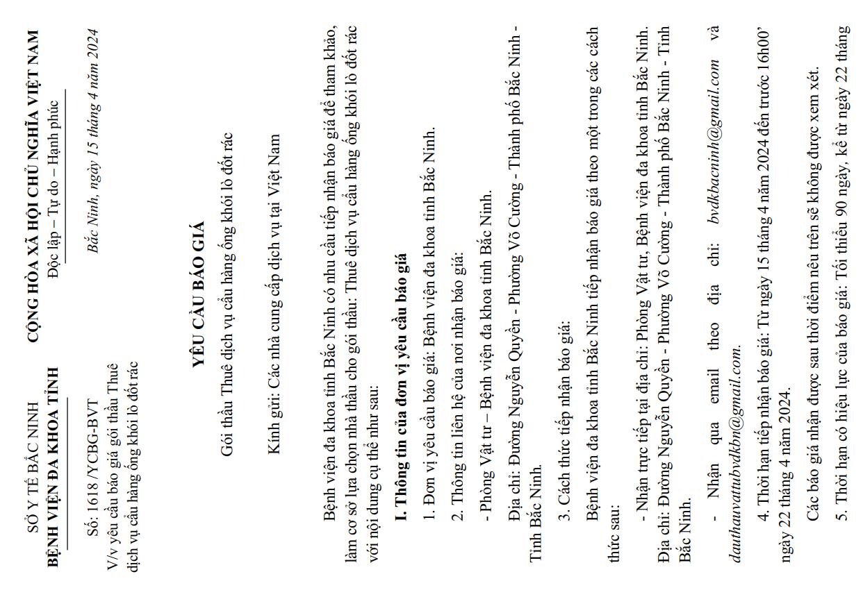 Yêu cầu cung cấp báo giá Gói thầu: thuốc generic Dự toán mua sắm: Mua sắm thuốc tập trung cấp địa phương tại Bệnh viện đa khoa tỉnh Bắc Ninh năm 2024-2025