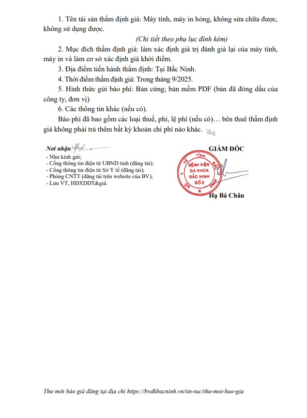 Yêu cầu báo phí Thẩm định giá gói "Thanh lý máy tính, máy in"