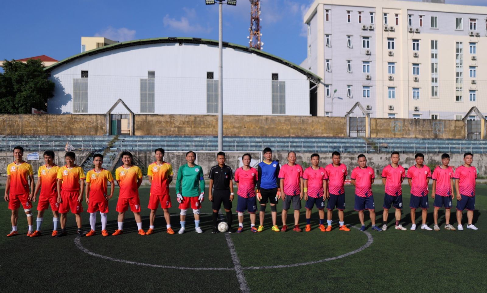 Đội bóng các phòng chức năng và Trung tâm CC&VC115 chuẩn bị trận đấu