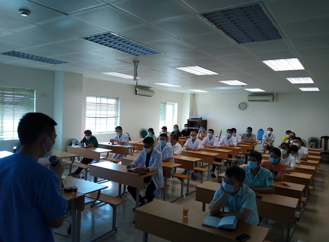 BS Phan Bảo Trung, Phó Trưởng khoa Hồi sức tích cực, BVĐK tỉnh Bắc Ninhtập huấn cho các thành viên của Đoàn công tác