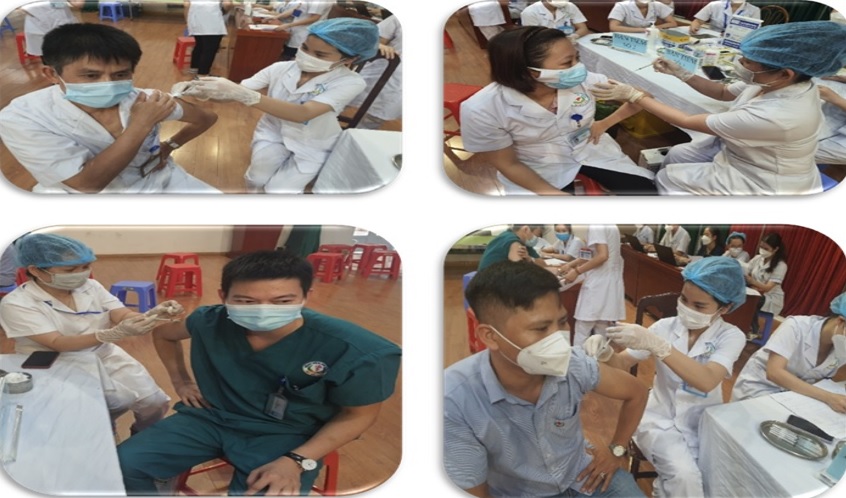 Ảnh: Nhân viên y tế BVĐKBN được tiêm vắc xin phòng Covid-19 mũi 4