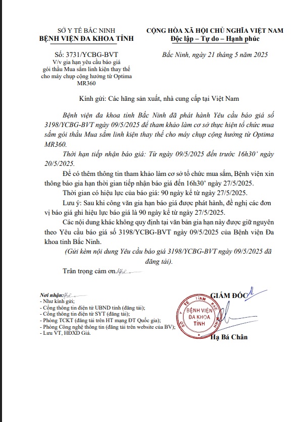 Gia hạn yêu cầu báo giá gói thầu Mua sắm linh kiện thay thế cho máy chụp cộng hưởng từ Optima MR360