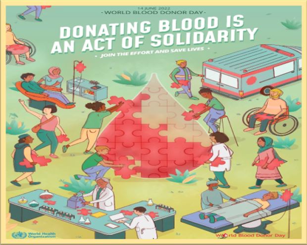 Khẩu hiệu của Ngày thế giới dành cho người hiến máu năm 2022 là “Hiến máu là một hành động đoàn kết”. Mục đích của chiến dịch năm nay là: Tri ân những người hiến máu trên thế giới và tạo ra nhận thức sâu rộng của cộng đồng về sự cần thiết của việc hiến máu thường xuyên. Ghi nhận và phát huy các giá trị của hoạt động hiến máu tình nguyện trong việc góp phần nâng cao tình đoàn kết cộng đồng, gắn kết xã hội.