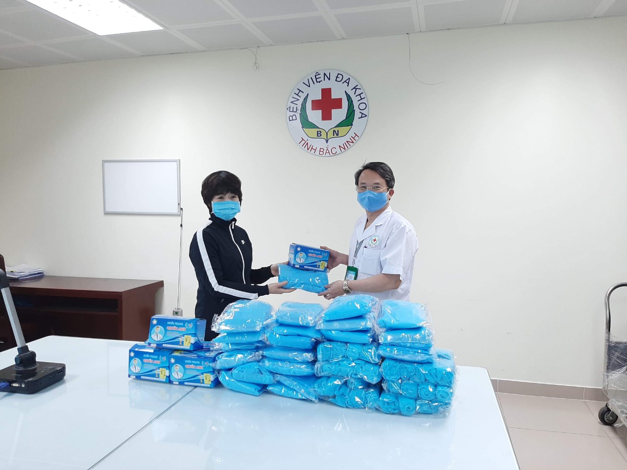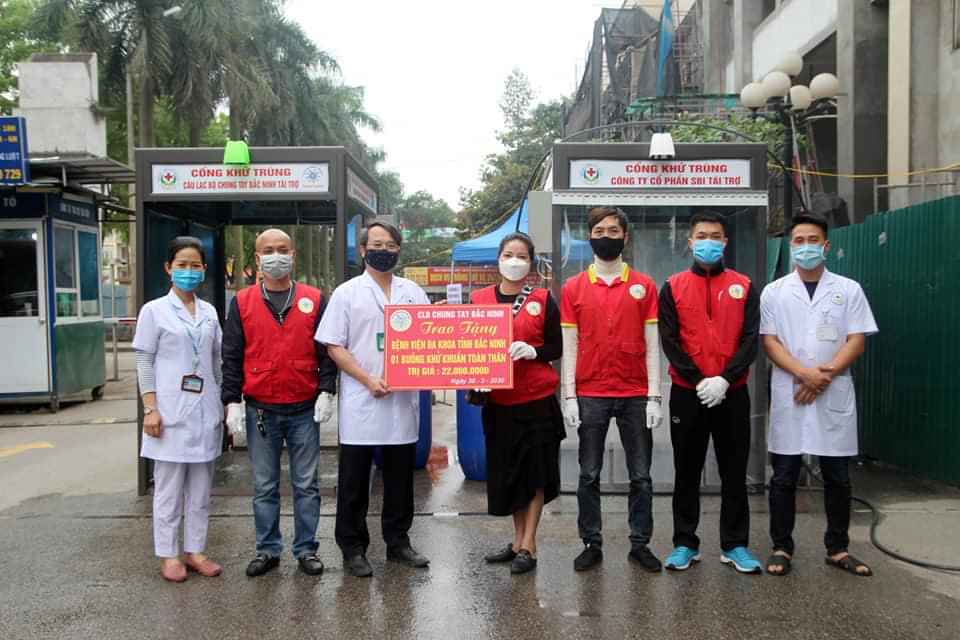 Bên cạnh sự nỗ lực của các y, bác sỹ trong công tác phòng chống dịch bệnh còn có công sức đóng góp không nhỏ của các tổ chức, cá nhân từ thiện giúp đỡ bệnh viện. Phát huy tinh thần yêu nước “Chống dịch như chống giặc”, ngay từ những ngày đầu chống dịch Covid-19, Bệnh viện đã tiếp nhận sự giúp đỡ của Công ty cổ phần SBI, Công ty sản xuất nước lọc thận và Câu lạc bộ Chung tay TP Bắc Ninh đã trao tặng 03 buồng khử khuẩn toàn thân được đặt ngay tại khu vực cổng ra vào của Bệnh viện và khu vực ra vào phòng khám Truyền Nhiễm nhằm ngăn chặn tối đa sự tồn tại của vi khuẩn, virus trên bề mặt cơ thể mọi người.