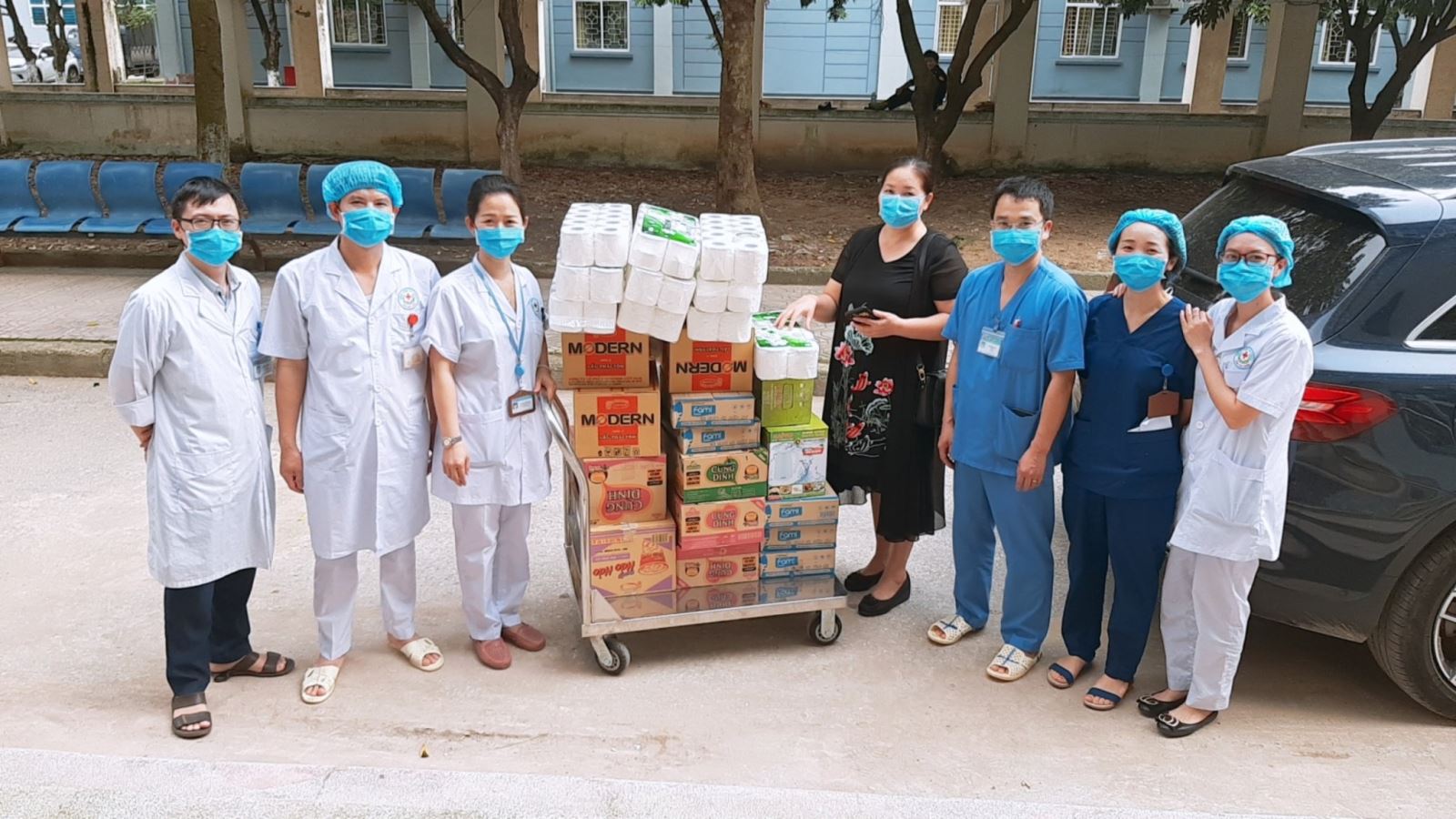 Gia đình chị Nguyễn Thị Nga Bắc Ninh trao tặng 1 số nhu yếu phẩm cho nhân viên y tế khu vực cách lyT/g: Phạm Xuân Hiền – ĐD
