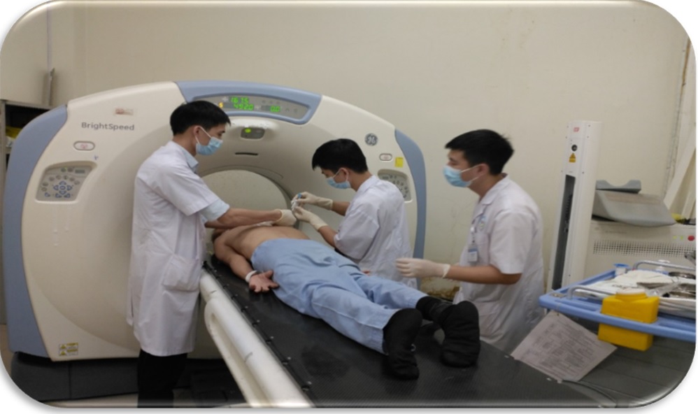 Ảnh: Ekip thực hiện kỹ thuật sinh thiết khối u phổi dưới hướng dẫn của CT chụp ảnh kỷ niệm