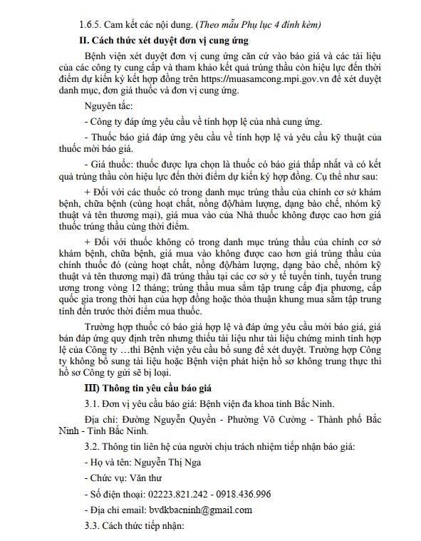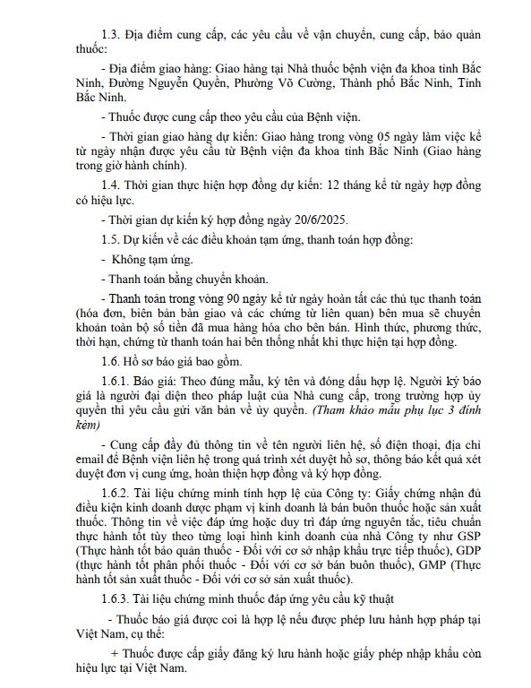 Yêu cầu báo giá Gói thầu: Mua sắm bổ sung 05 thuốc generic thuộc danh mục thuốc đấu thầu tập trung cấp địa phương tại Bệnh viện đa khoa tỉnh Bắc Ninh năm 2024-2025