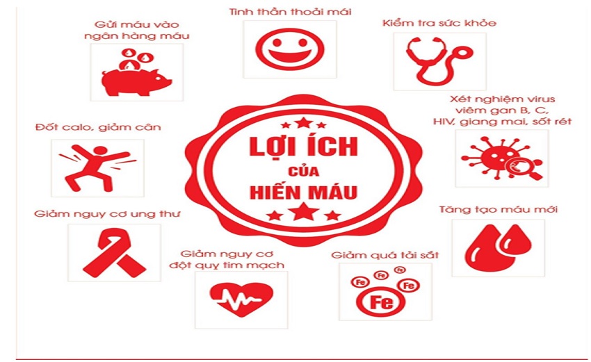 Hiến máu cứu người - một nghĩa cử cao đẹp, là hành động giúp đỡ những người bệnh đang cần những giọt máu quý giá để duy trì sự sống. Với những người hiến máu, việc đi hiến máu còn mang lại nhiều lợi ích như: Giúp tạo trạng thái tinh thần tích cực, tâm lý thoải mái; được kiểm tra, tư vấn sức khỏe, giúp người hiến máu theo dõi và tự giám sát sức khỏe của mình; giúp giảm tải sắt trong cơ thể, giúp tăng tạo máu mới. Hiến máu làm giảm nguy cơ xuất hiện đột quỵ, tim mạch. Hiến máu giúp tăng quá trình đốt cháy calo và giúp đỡ trong việc giảm cân. Mỗi lần hiến máu là một lần gửi máu vào ngân hàng máu, khi không may mắn, người hiến máu cần nhận máu, xuất trình giấy chứng nhận hiến máu tình nguyện sẽ được bồi hoàn máu miễn phí tại các cơ sở y tế công lập trên toàn quốc.