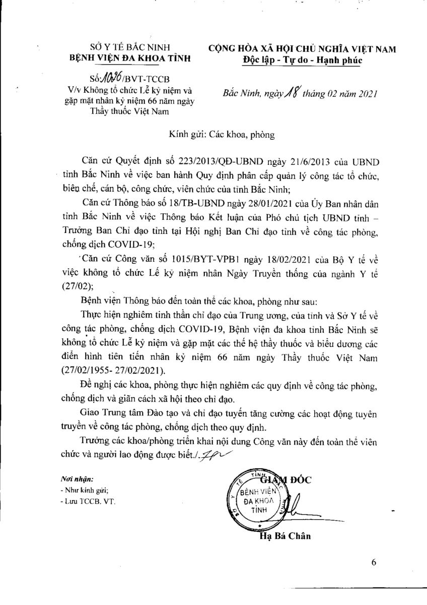 Quyết định về việc không tổ chức Lễ Kỷ niệm và gặp mặt nhân Kỷ niệm 66 năm ngày Thầy Thuốc Việt Nam