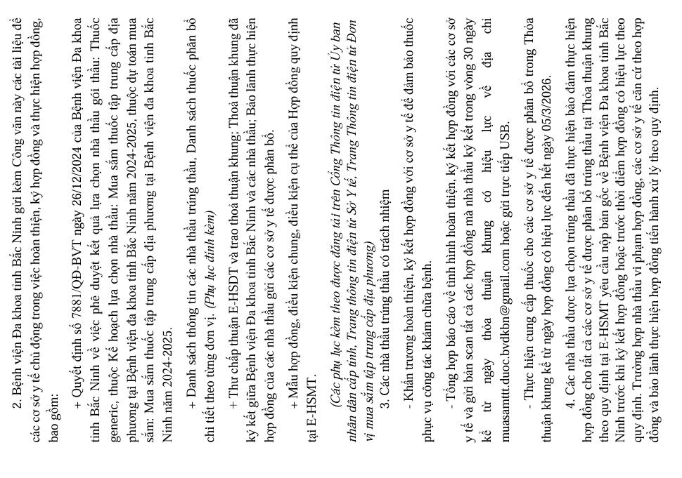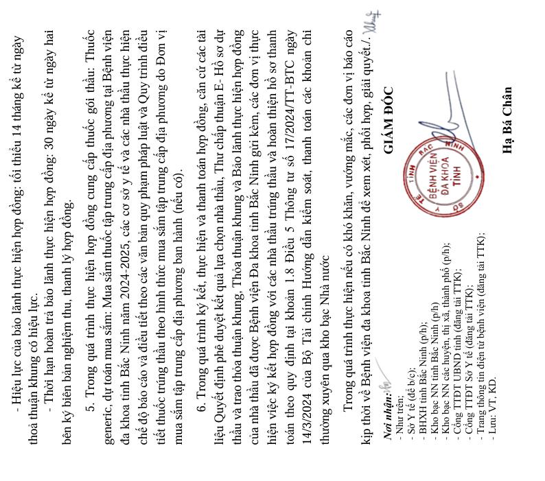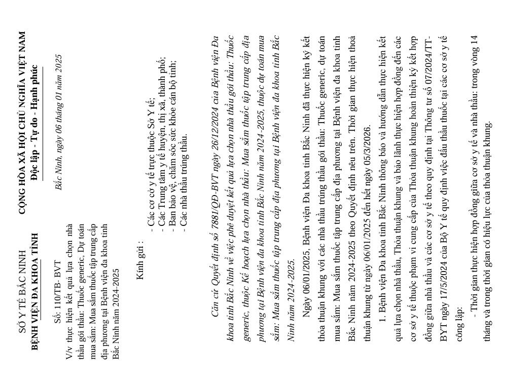 THÔNG BÁO THỰC HIỆN KẾT QUẢ LỰA CHỌN NHÀ THẦU, GÓI THẦU: THUỐC GENERIC, DỰ TOÁN MUA SẮM: MUA SẮM THUỐC TẬP TRUNG CẤP ĐỊA PHƯƠNG TẠI BỆNH VIỆN ĐA KHOA TỈNH BẮC NINH NĂM 2024-2025