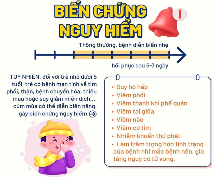 Hầu hết những người mắc cúm mùa sẽ hồi phục sau vài ngày đến 2 tuần, nhưng một số người có thể bị biến chứng do cúm, thậm chí đe dọa đến tính mạng và dẫn đến tử vong.