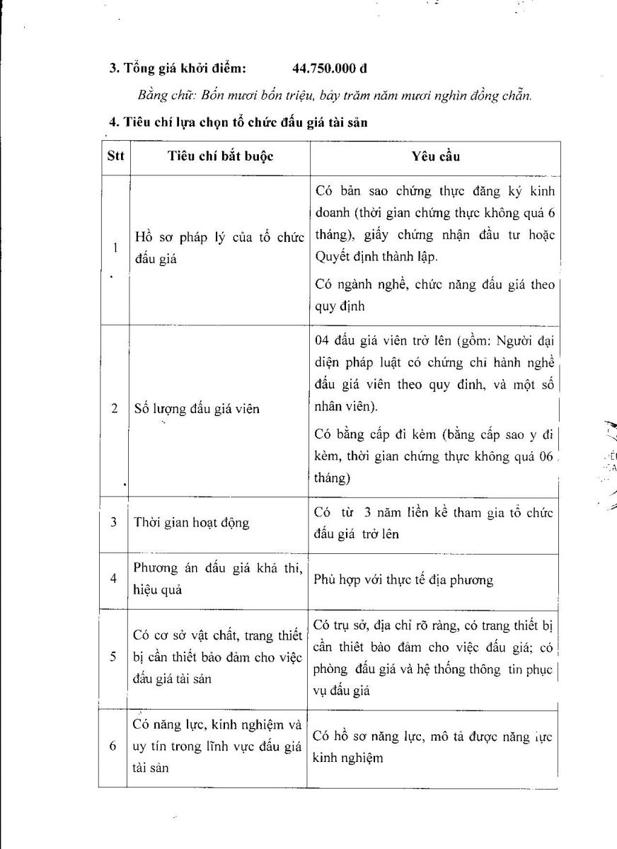 Thông tin lựa chọn đơn vị thực hiện cuộc đấu giá trên trang thông tin điện tử