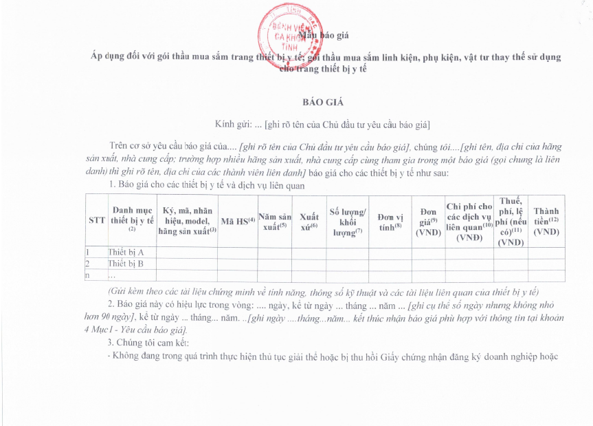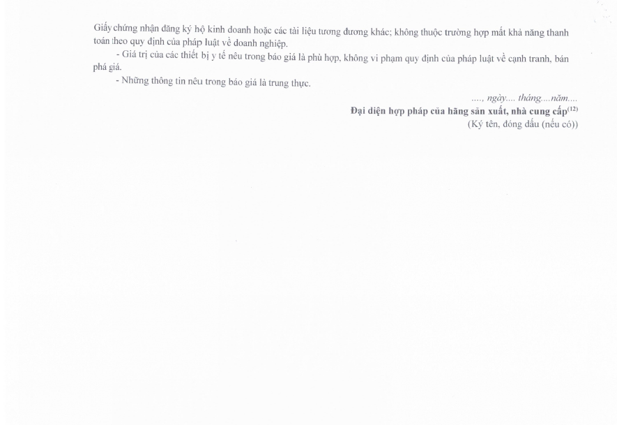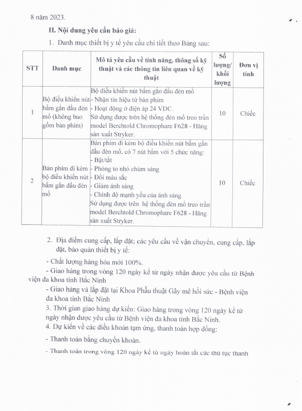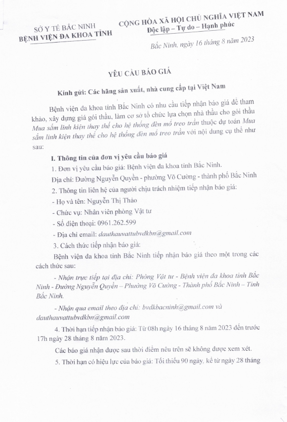 Thư mời báo giá gói thầu "Mua sắm linh kiện thay thế cho hệ thống đèn mổ treo trần"