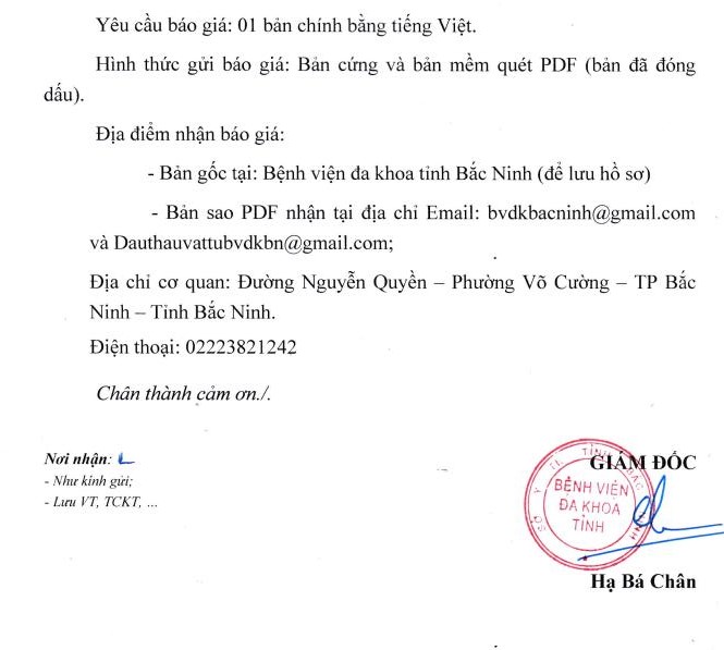 THƯ MỜI BÁO GIÁ: GÓI THẦU MUA SẮM VẬT TƯ BÔNG VÀ KIM LUỒN KHÔNG CÁNH