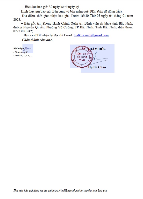 THƯ MỜI BÁO GIÁ: GÓI THẦU MUA SẮM HOÁ CHẤT XÉT NGHIỆM SINH HOÁ (LẦN 2)