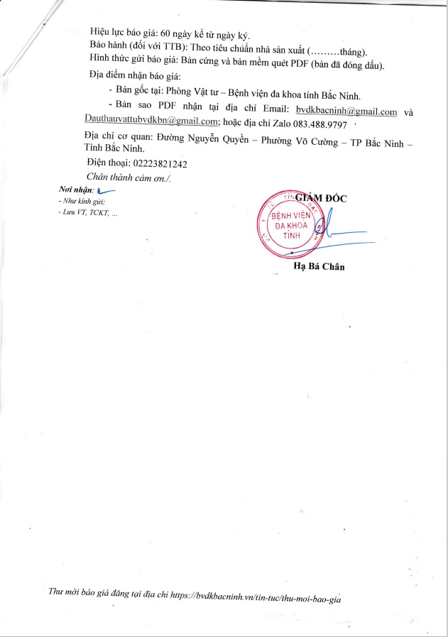 THƯ MỜI BÁO GIÁ Gói thầu mua sắm một số vật tư y tế tiêu hao cho điều trị (lần 2)