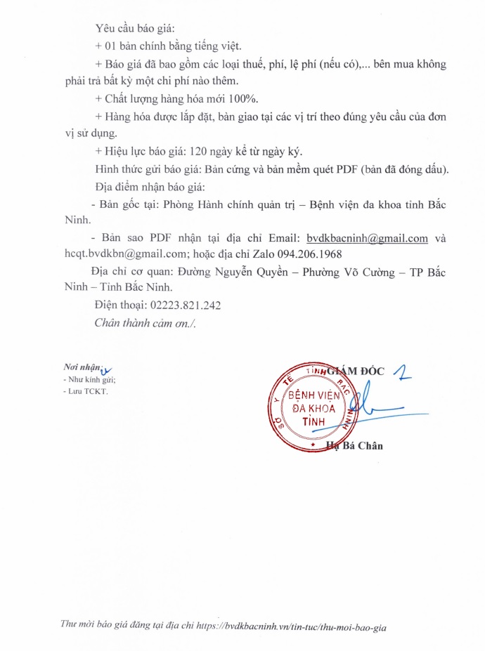 Thư mời báo giá Gói thầu in ấn tài liệu, chứng nhận lớp đào tạo, chuyển giao kỹ thuật, nâng cao năng lực chuyên môn cho y tế Xã, phường, thị trấn trên địa bàn tỉnh Bắc Ninh, giai đoạn 2020-2025 ( Đọt 5)