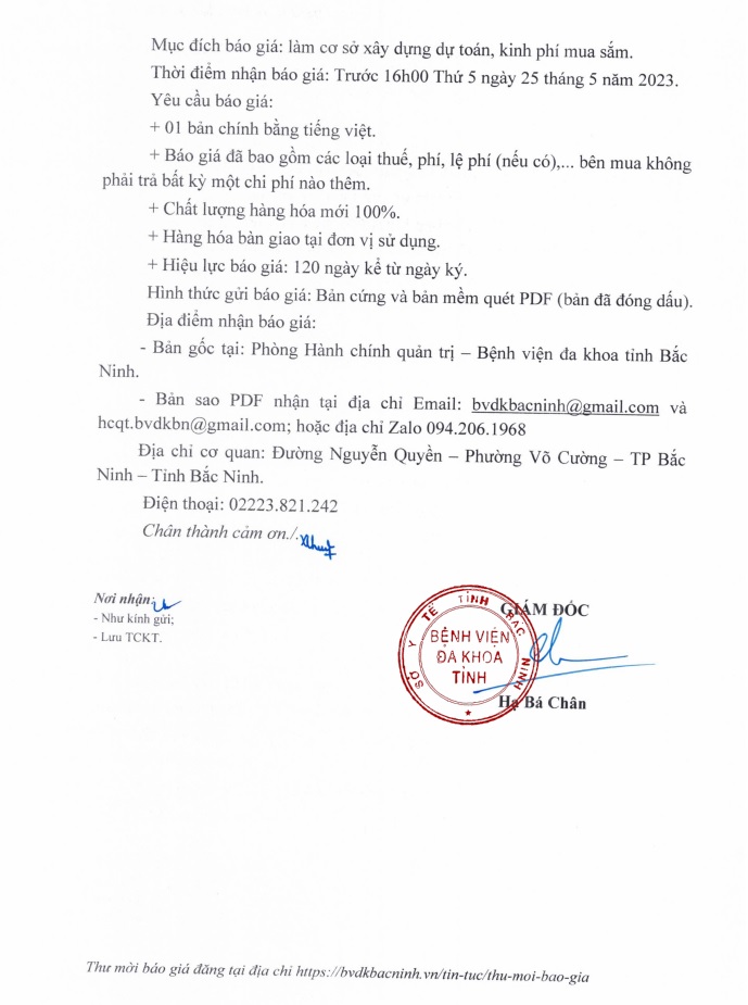 Thư mời báo giá