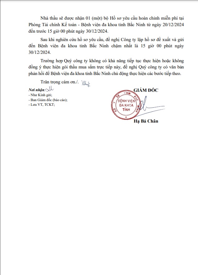 Yêu cầu cung cấp báo giá Gói thầu Mua sắm thuốc generic tại Bệnh viện đa khoa tỉnh Bắc Ninh năm 2024-20258 ( Lần 4)